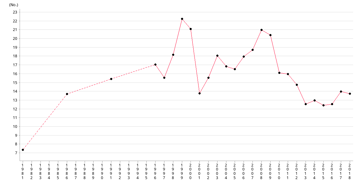 All figures are collected from Social Welfare Departmen since 1981.