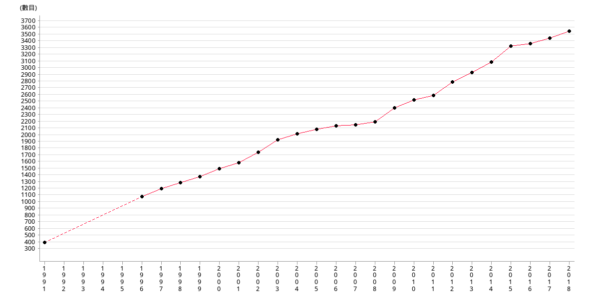 All figures are as at end of financial year, e.g., figure for 1991/92 is used for 1991. Figures for 1981 and 1986 are not available.