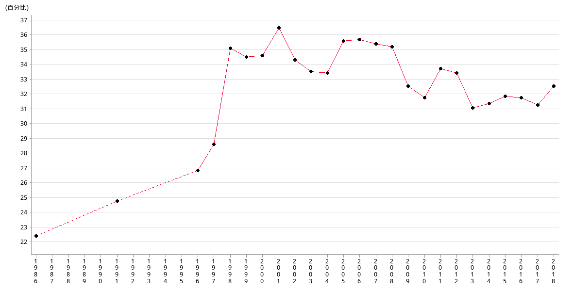 | % | 34.50 | 33.70 | 33.60 | 35.80 | 35.90 | 35.60 | 35.40 | 32.70 |