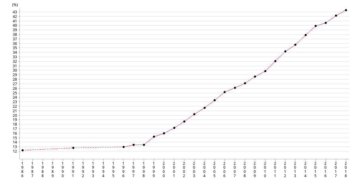 | % | 29.60 | 31.80 | 33.90 | 35.40 | 37.50 | 39.50 | 40.20 | 41.80 |