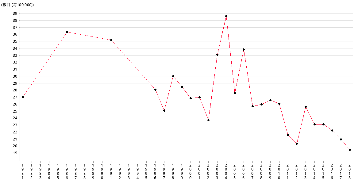 | No. per 100,000 | 20.90 | 19.42 |