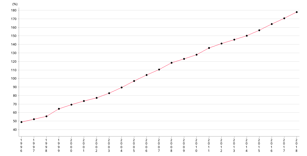 | % | 48.70 | 52.10 | 55.60 | 64.30 | 69.10 | 73.30 | 77 | 82.40 |