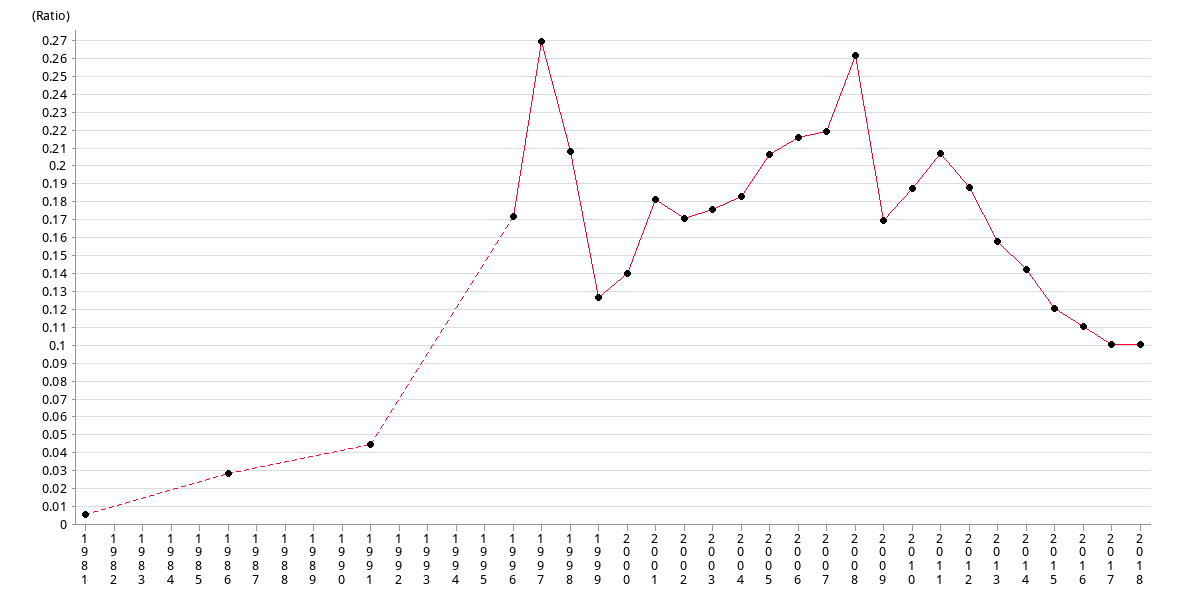 | Ratio | 0.17 | 0.19 | 0.21 | 0.19 | 0.16 | 0.14 | 0.12 | 0.11 |
