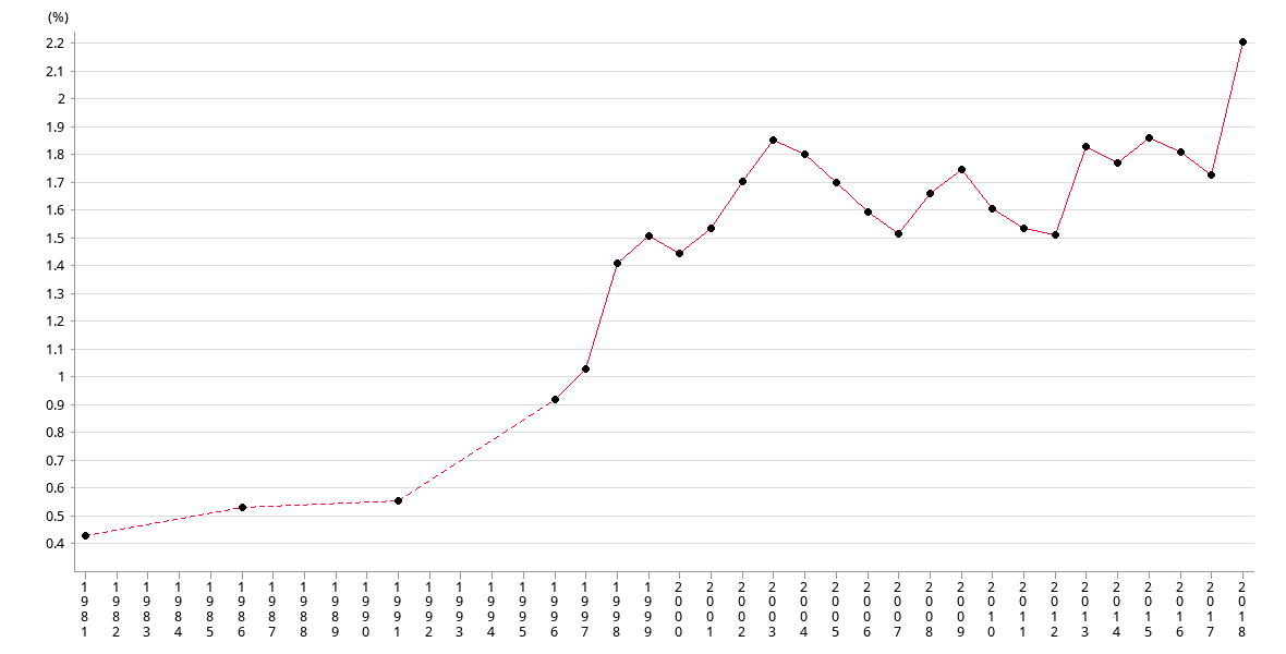 | % | 0.43 | 0.53 | 0.55 | 0.91 | 1.02 | 1.39 | 1.49 | 1.42 |