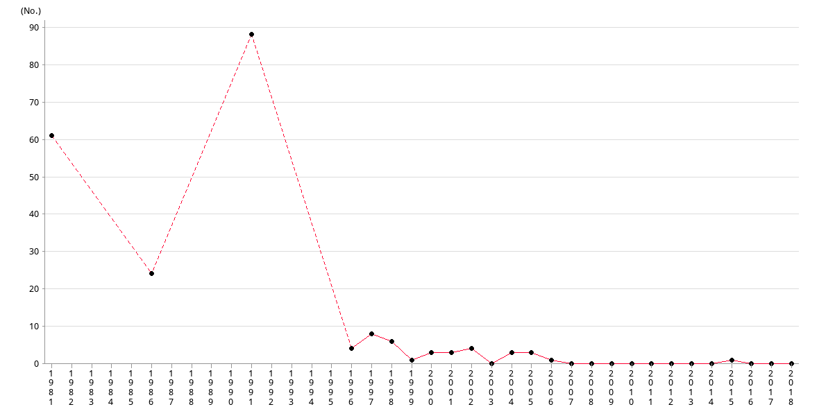 Figures for 1983, 1987 and 1992 are collected from Royal Hong Kong Police Force.