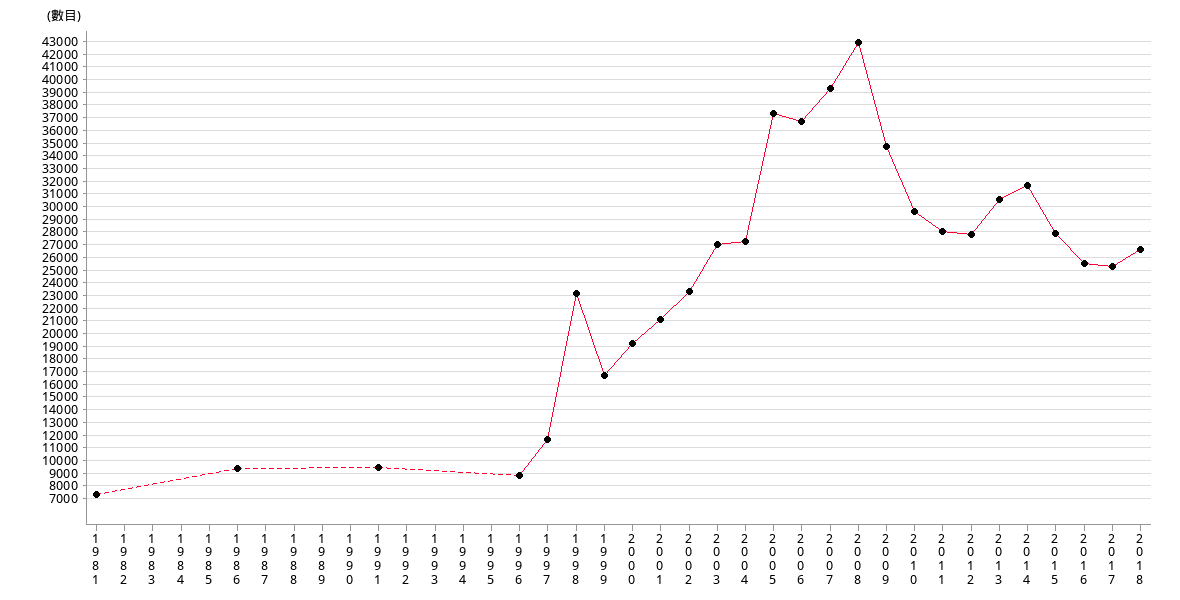 | Year | 1981 | 1986 | 1991 | 1996 | 1997 | 1998 | 1999 | 2000 |