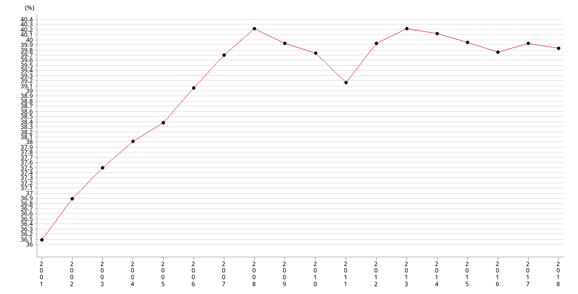 | % | 36.09 | 36.93 | 37.56 | 38.10 | 38.48 | 39.19 | 39.86 | 40.40 |